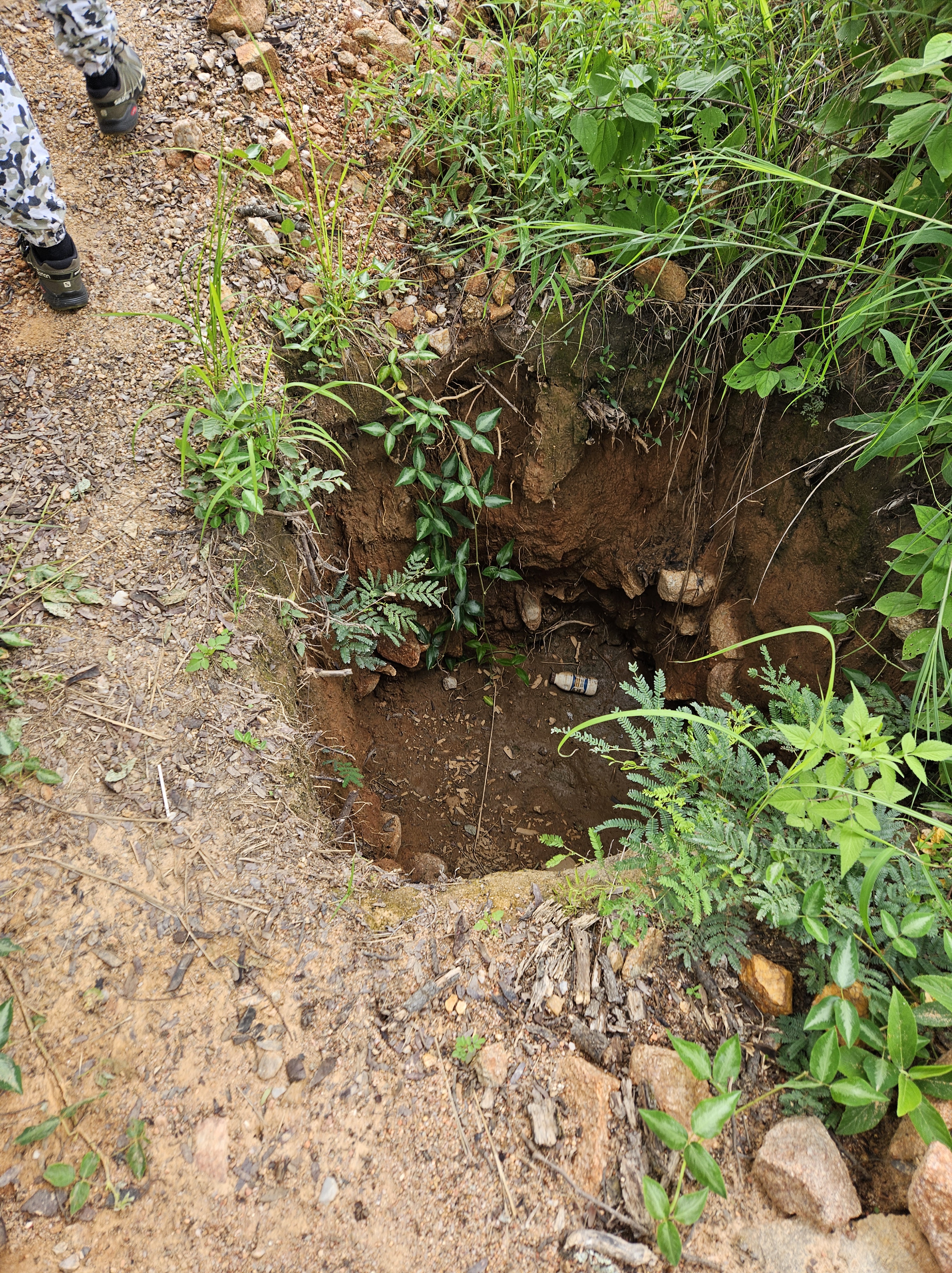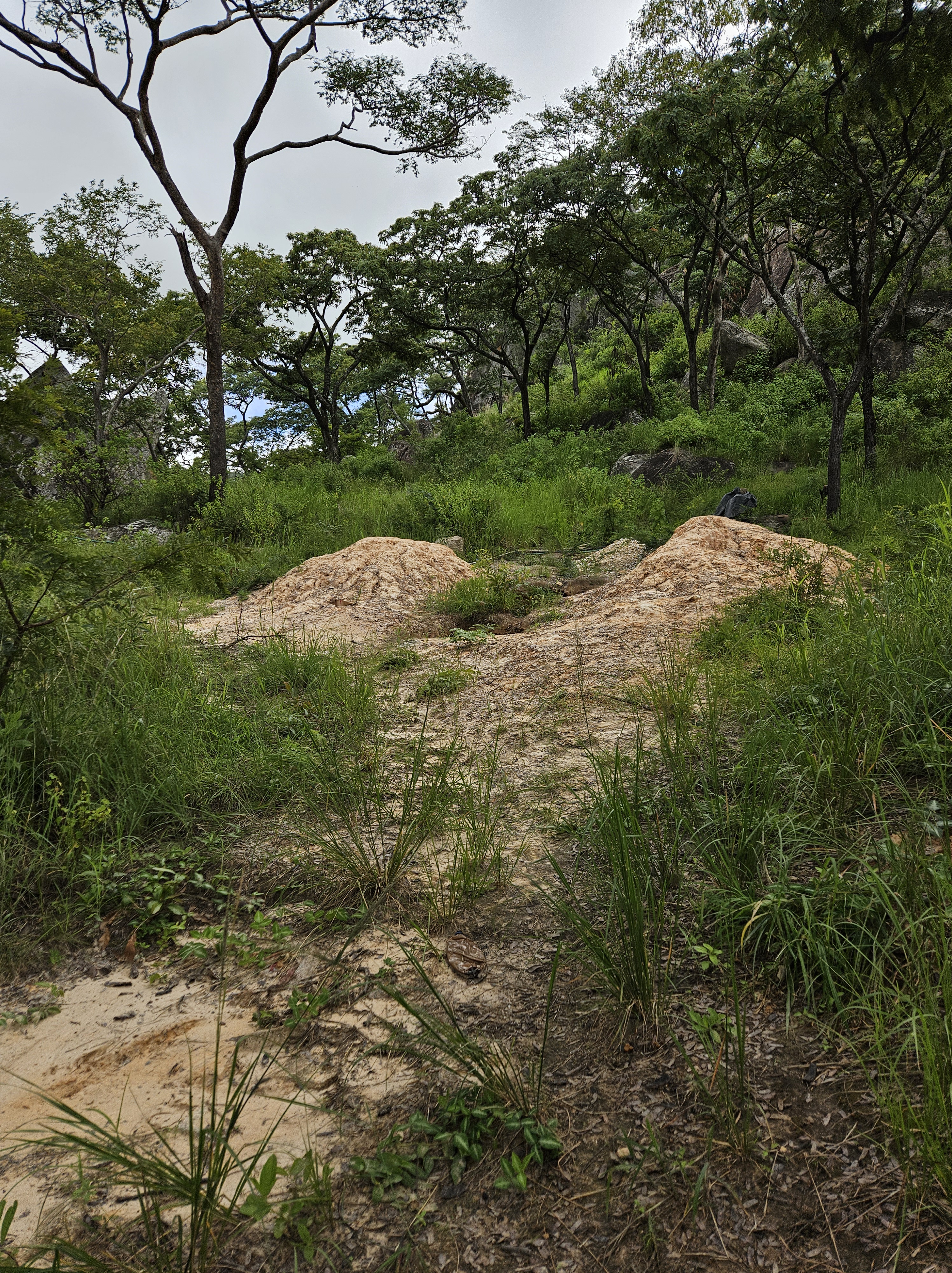 After driving on a dirt road for 30 minutes, we parked at the camp of some miners (pictured below on left). They are mining the hills for gold. Along the hike we passed by some of the results of their efforts.